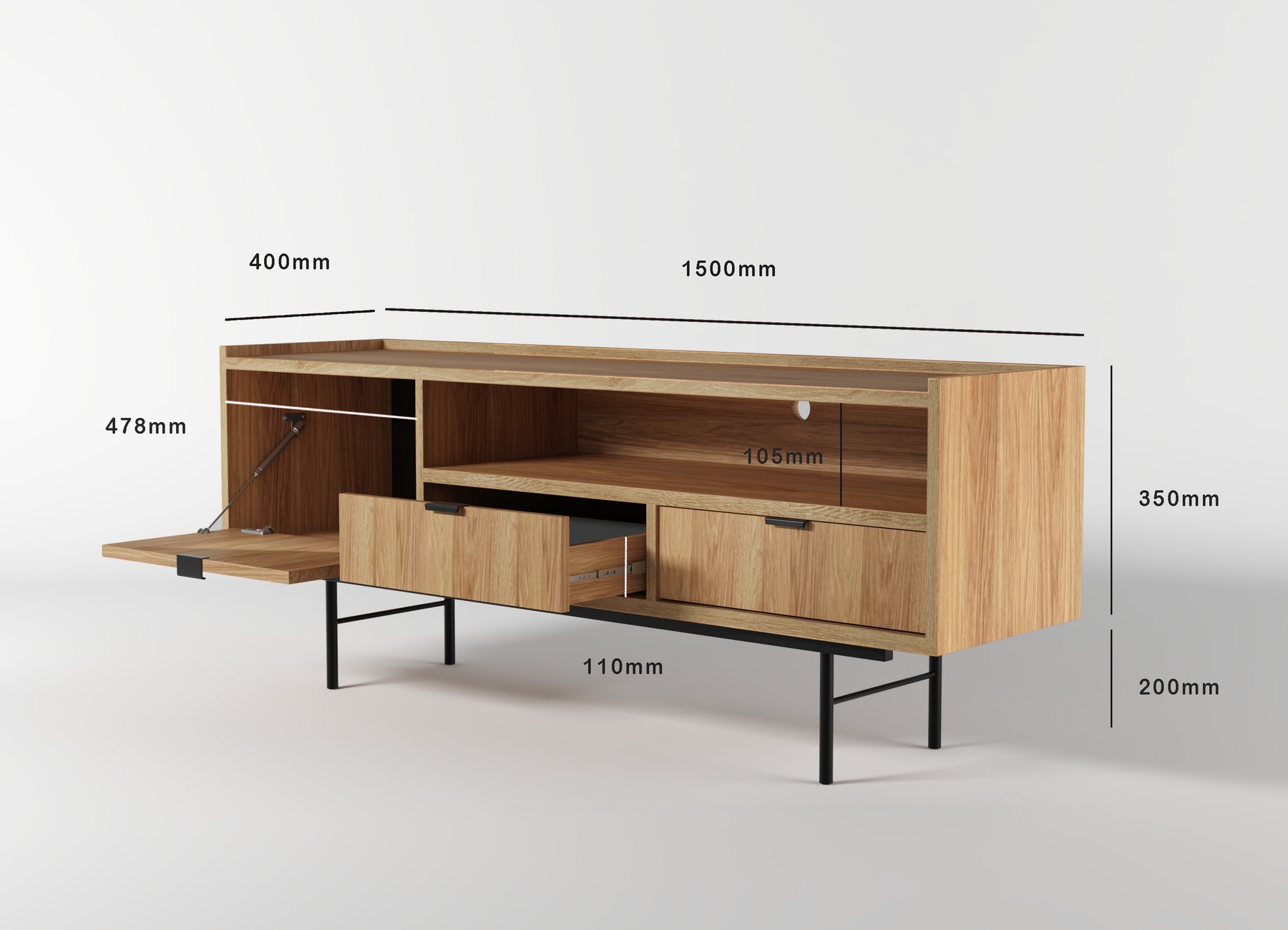 Szafka RTV o szerokości 150 centymetrów w kolorze hiroka.