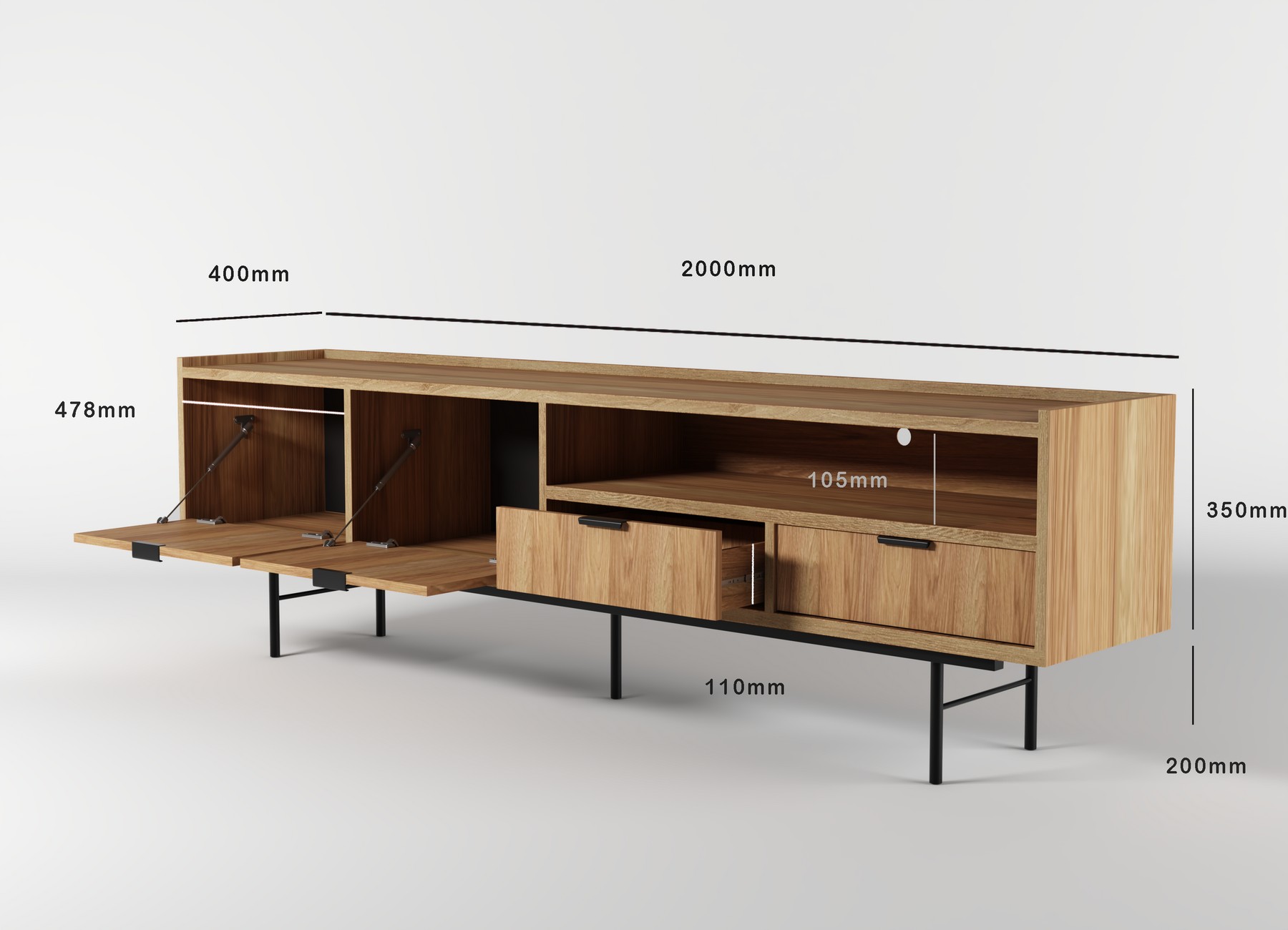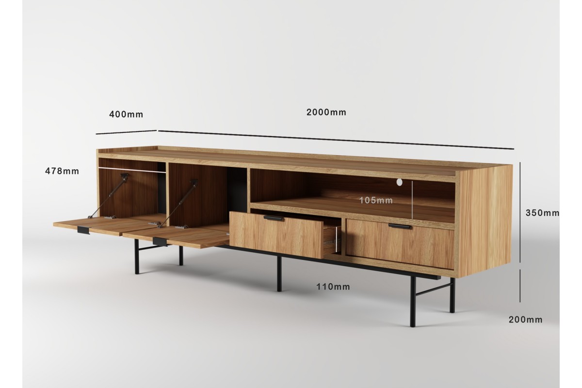 Szafka RTV o szerokości 200 centymetrów w kolorze hiroka.