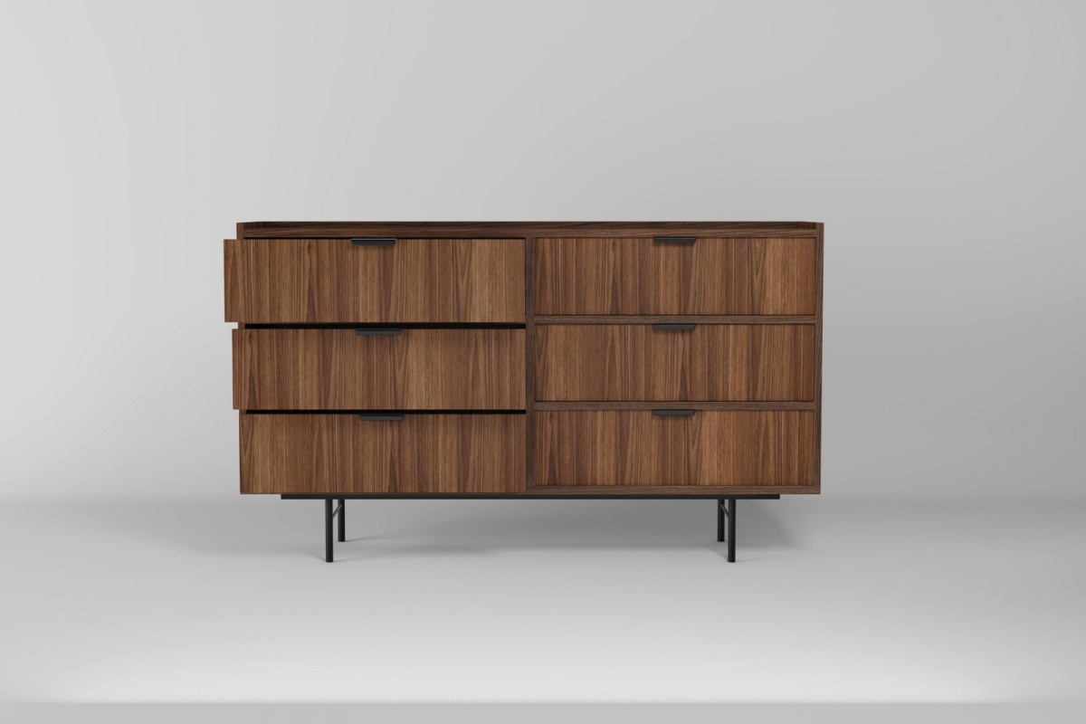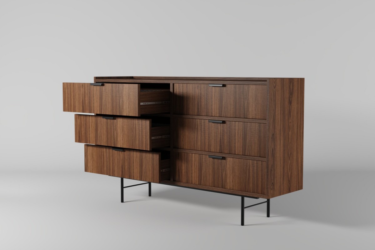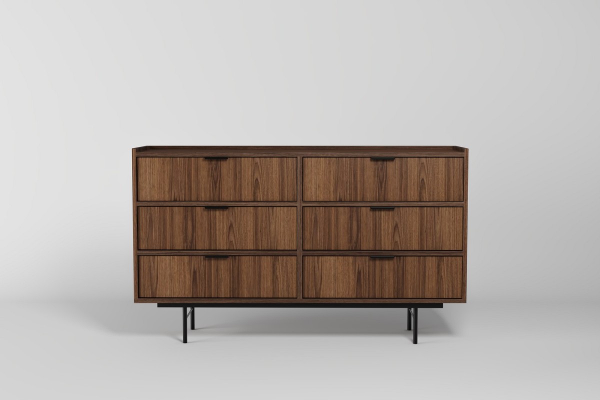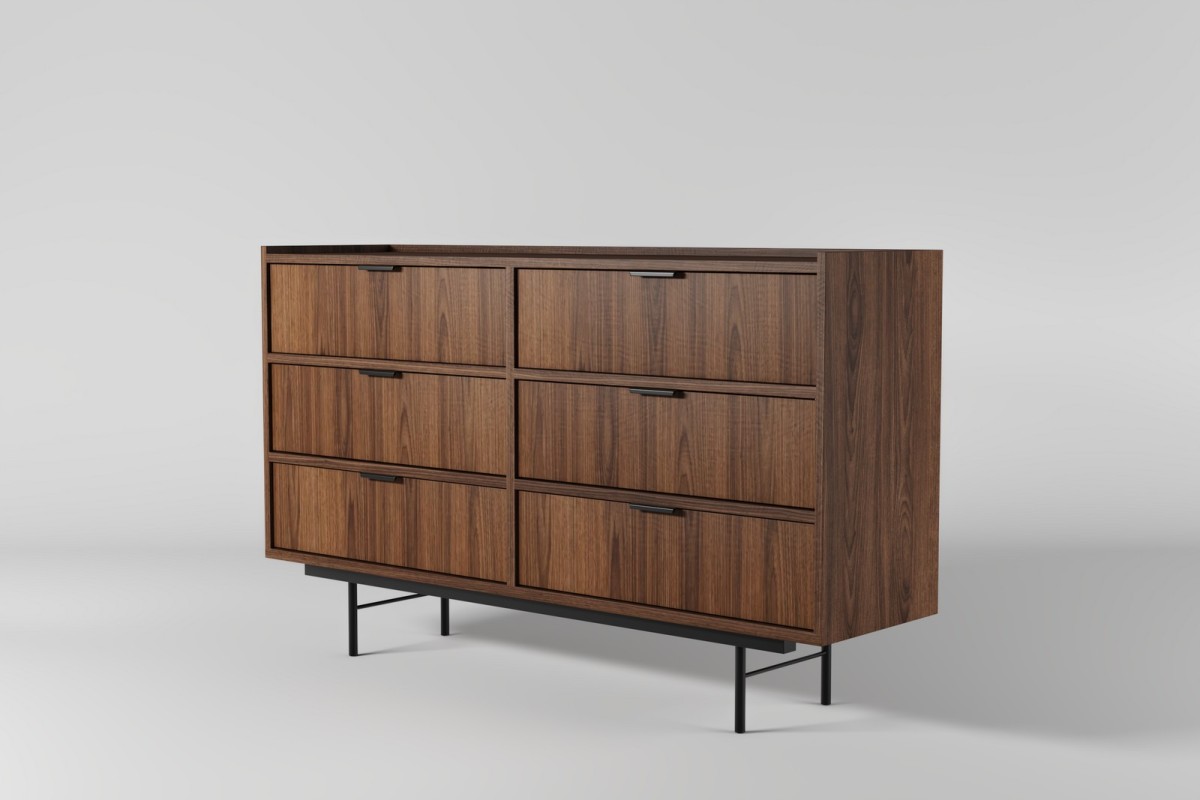 Komoda Edson z 6 szufladami w kolorze orzech.