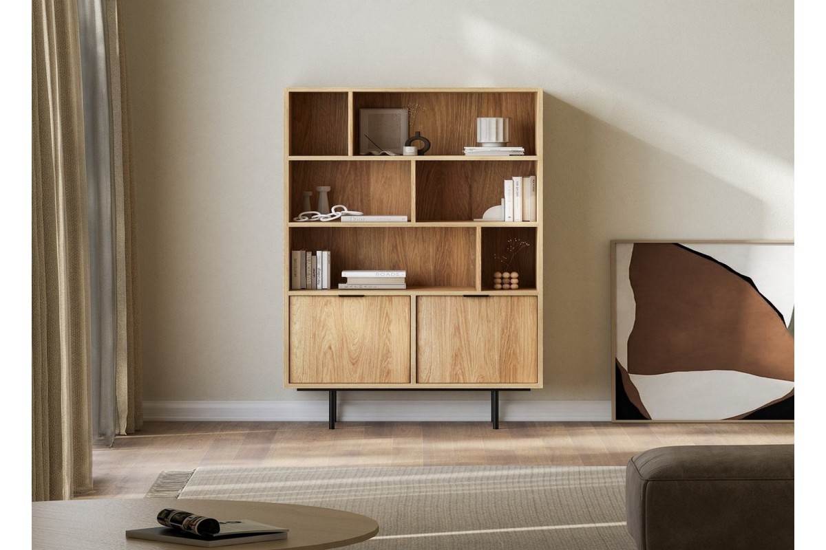 Regał EDSON z 6 odkrytymi półkami i 2 zamykanymi szafkami to funkcjonalny mebel o ponadczasowym charakterze, zaprojektowany z myślą o codziennym użytkowaniu. Prosta forma i stonowany design sprawiają, że regał dobrze wpisuje się w różne aranżacje wnętrz – od nowoczesnych po bardziej klasyczne.