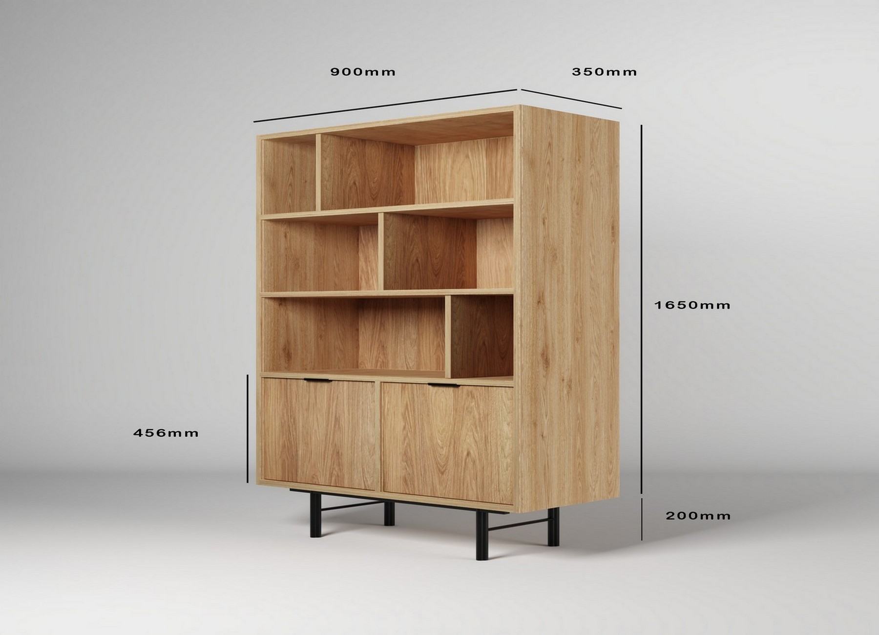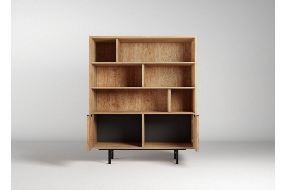 Przemyślany układ półek sprawia, że regał jest nie tylko estetyczny, ale przede wszystkim praktyczny. Stabilna konstrukcja i czytelna, geometryczna bryła nadają mu lekkości wizualnej, dzięki czemu mebel nie przytłacza przestrzeni nawet w mniejszych wnętrzach. To uniwersalne rozwiązanie do salonu, gabinetu czy sypialni, które łączy w sobie funkcję przechowywania i subtelnej ekspozycji.